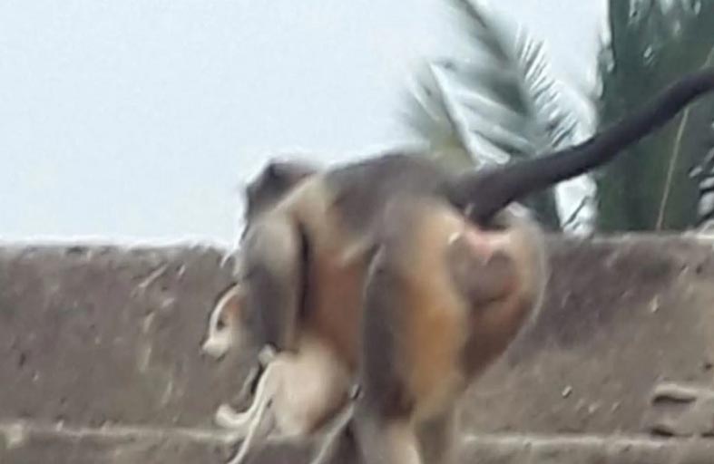 ونشرت صحيفة "ميرور" البريطانية، صورة لأحد القرود وهو يمسك جروا ويصعد به إلى مكان مرتفع ويقذفه إلى أسفل، موضحة أن "القرود التي دفعها الانتقام قتلت 250 كلبا برميها من المباني والأشجار".