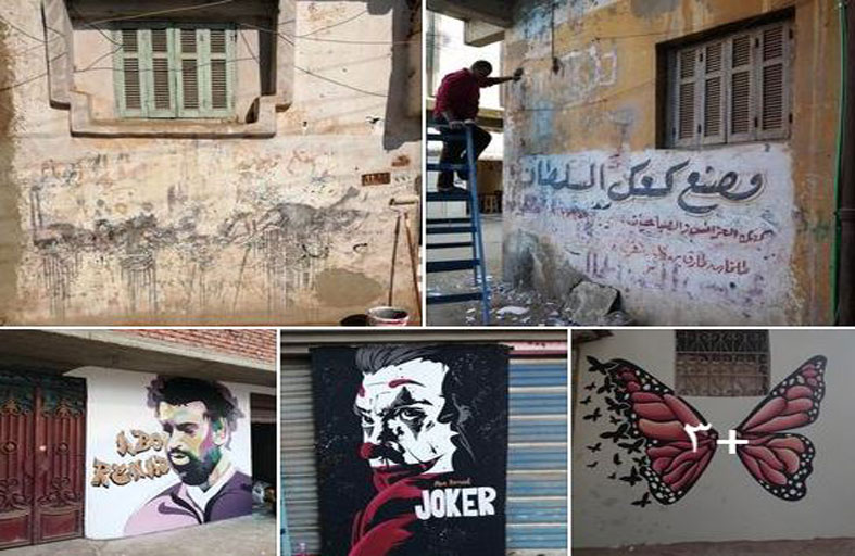 على بعد نحو 120 كم من العاصمة المصرية القاهرة، حركة دؤوبة تضج بها قرية كفر الطويلة بمحافظة الدقهلية شمالي البلاد. شباب يحملون أوعية بها مواد طلاء، وآخرون يساعدون شاب منهمك في رسم أحد الوجوه لشخصية شهيرة اختارها أهل القرية.