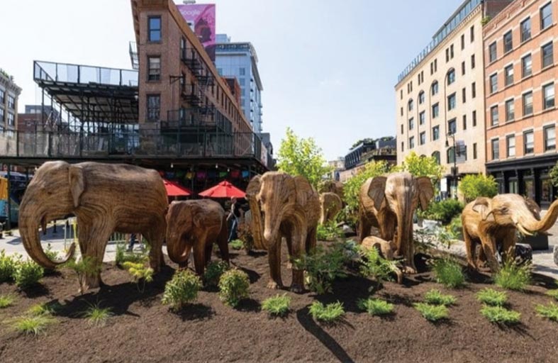 احتضنت منطقة "ميتباكينغ" في مانهاتن، وسط شوارع نيويورك، فيلة بالحجم الطبيعي، صنعت من نباتات، تحت عنوان "هجرة الفيلة العظيمة"، ويعد هذا أحد أكبر التركيبات الفنية في المنطقة.
