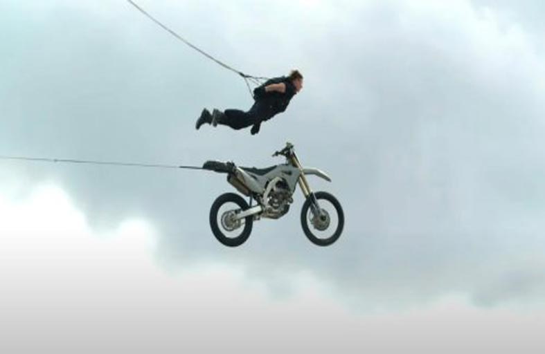 ونفذت التجربة فوق منحدر صخري في النرويج، ضمن النسخة السابعة من فيلم "مهمة مستحيلة".وذكرت صحيفة "ديلي ميل" البريطانية أن اللعبة الهوائية التي مارسها كروز كانت الأعظم من نوعها في تاريخ السينما.وشيّد فريق العمل جسر المنحدر المخصص للدراجة الهوائية التي قادها كروز، وكانت نهايتها عند حافة المنحدر.