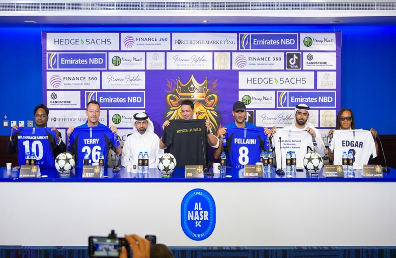 وتم الإعلان عن تفاصيل الحدث خلال المؤتمر الصحفي الذي عقد في نادي النصر الرياضي وتحدث خلاله الشيخ خليفة بن سعيد بن مكتوم بن راشد آل مكتوم مالك فريق كينجز X1، وادجار ديفيدز، نجم منتخب هولندا ونادي يوفنتوس سابقا وكابتن فريق كينجز x1، وجون تيري، كابتن المنتخب الانجليزي ونادي تشلسي سابقا وكابتن فريق هيدج آند ساكس، ومروان فيلايني، نجم منتخب بلجيكا ونادي مانشستر يونايتد سابقا ولاعب في فريق هيدج آند ساكس، وعلي عمر البلوشي مدير إدارة الفعاليات الرياضية بمجلس دبي الرياضي، ومحمد موسى رئيس اللجنة المنظمة للحدث، وشيفانش رانجيت مالك فريق هيدج آند ساكس. وقال الشيخ خليفة بن سعيد بن مكتوم بن راشد آل مكتوم: "أنا سعيد أن أكون جزء من هذه البطولة منذ أن عرفت بتنظيم هذه البطولة حرصت على أن أكون مساهمًا فيها ومشاركًا في نجاحها، الرياضة جزء أساسي من حركة المجتمع، والرياضة في دبي تحظي باهتمام كبير وتحقق نجاحات متواصلة وتستقطب منظمين ولاعبين عالميين، وسأعمل على استقطاب لاعبين مميزين للفريق لكي يقدموا مباراة كبيرة ونحرز اللقب ونقدم للجماهير حدثًا رياضيًا يليق باسم دبي ومكانتها على خارطة الرياضة العالمية".
