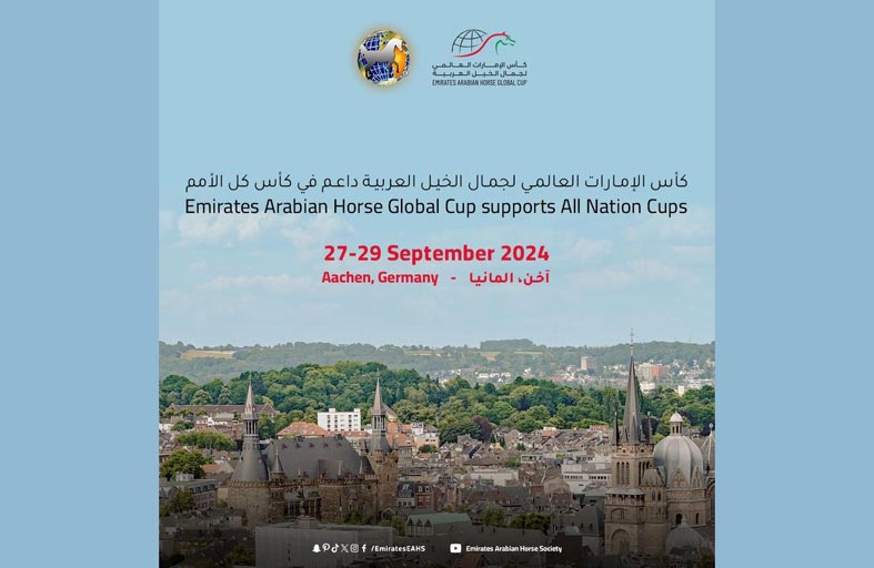 أعلنت اللجنة المنظمة لكأس الإمارات العالمي لجمال الخيل العربية، دعم بطولة كأس كل الأمم العريقة، التي تقام في مدينة آخن الألمانية منذ 40 عاما، من خلال تقديم جوائز ودروع للخيول الفائزة، في إطار تعزيز التعاون المشترك بين الكأس العالمي وبطولة آخن. وتأتي المبادرة للتأكيد على التزام كأس الإمارات العالمي لجمال الخيل العربية، بدعم وتطوير أنشطة الخيول العربية تجسيدا لرؤية سمو الشيخ منصور بن زايد آل نهيان نائب رئيس الدولة نائب رئيس مجلس الوزراء رئيس ديوان الرئاسة، رئيس مجلس إدارة جمعية الإمارات للخيول العربية، بدعم الخيل العربية في مختلف قارات العالم.وتشمل هذه البطولة العريقة عدة منافسات، وتُقام خلال الفترة من 27 إلى 29 سبتمبر الجاري، لدعم مربي وملاك الخيل العربية حول العالم.