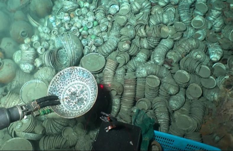 من خلال بحث في أعماق المحيطات، تمكنت غواصة من انتشال المئات من الآثار الصينية التي بقيت بحالة سليمة في بحر الصين الجنوبي، رغم أن تاريخها يعود إلى عهد أسرة مينغ التي حكمت الصين من القرن الثالث عشر إلى القرن السادس عشر. وأعلنت إدارة التراث الثقافي الوطني الصينية (NCHA) في بيان أنه تم انتشال ما يقرب من 1000 قطعة أثرية ثقافية من حطام سفينتين يعود تاريخها إلى عهد أسرة مينغ - من 1368 إلى 1644 - بما في ذلك الخزف والفخار والعملات النحاسية وقرون الغزلان. واستخدم المنقبون الغواصة المأهولة Deep Sea Warrior الأسبوع الماضي لاستعادة الكنوز من حطام السفينتين التابعتين لأفراد أسرة مينغ الذين كانوا يستخدمون بحر الصين الجنوبي، المعروف باسم طريق الحرير البحري القديم، كطريق تجاري مهم.