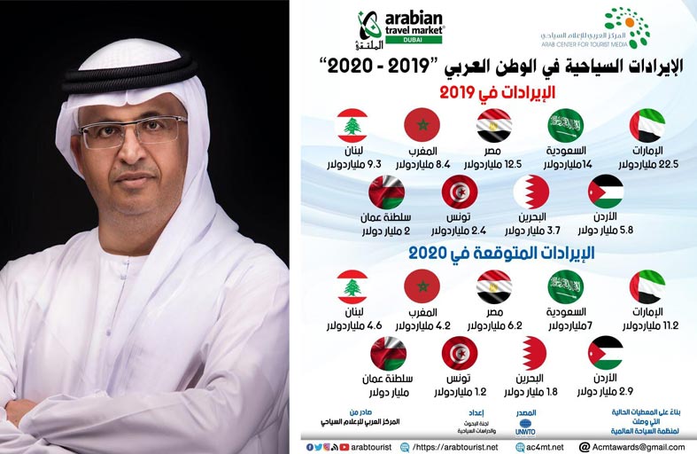 كشف المركز العربي للإعلام السياحي عن عواقب وتأثيرات وخيمة لوباء ڤيروس كورونا المستجد (كوڤيد 19) على صناعة السياحة العربية، وأشار البيان إلى أن هبوطا متوقعا لإيرادات السياحة العربية سيتجاوز 50% من إجمالي الناتج في الدول التي تعتمد على السياحة كرافد أساسي للدخل الوطني.
