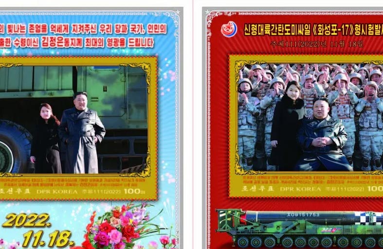 وأحدث ما قامت به بيونغ يانغ هو إصدار طوابع بريديه تظهر "الابنة المحترمة" كيم جو-إيه، خصوصا أثناء تفقدها مع والدها موقعا لإطلاق صاروخ "هواسونغ-17" العابر للقارات يوم الثامن عشر من نوفمبر 2022.