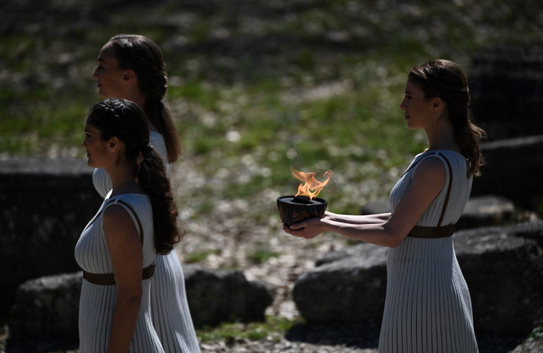 بداية من 10 مارس، ورغم أن اليونان لم تسجل اي وفيات وأقل من 100 حالة محددة لـ كوفيد-19، تم إغلاق المدارس. وتبعتها المتاجر والمتاحف والمواقع الأثرية والمسارح والمطاعم والشواطئ وجميع الأماكن المناسبة للتجمعات العامة في 14 مارس. تقرر الإبقاء على احتفال الشعلة الأولمبية، وهو حدث رمزي للغاية وحمّال امل، في 12 مارس في أولمبيا، ولكن تم تنظيمه خلف أبواب مغلقة، ودون حضور الجمهور للمرة الأولى منذ أكثر من ثلاثين عامًا.