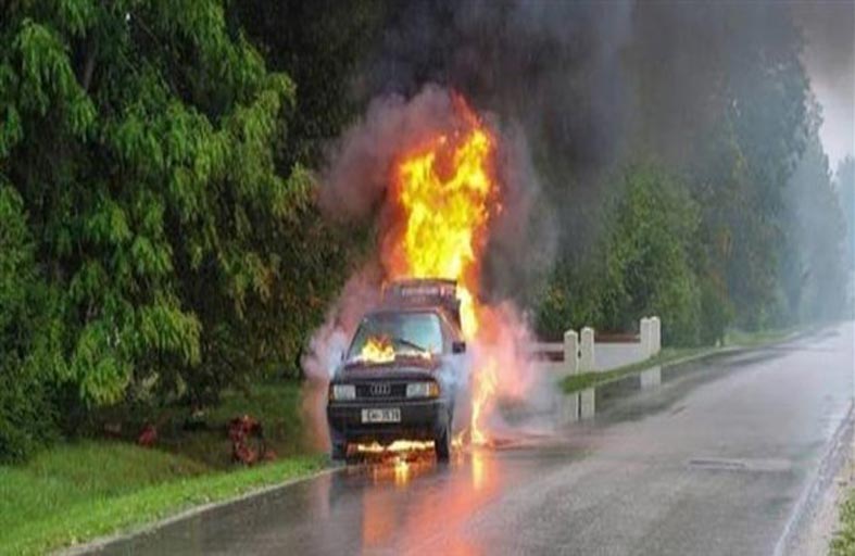 وسواء كانت السيارة تعتمد على محرك كهربائي أو محرك احتراق داخلي، فلا بد من التعامل السريع مع الموقف إذا نشب حريق بها، وذلك من خلال صف السيارة على جانب الطريق على الفور، مع الحفاظ على مسافة أمان كافية بين السيارة، التي نشب بها حريق، والمركبات الأخرى والأبنية، وتغيير تعشيقة ناقل الحركة على وضع P وشد مكبح اليد وإيقاف المحرك عن العمل.