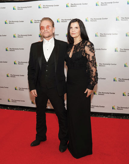 كينيدي سنتر بونو وزوجته إلي هيوسون يقفان على السجادة الحمراء في حفل استقبال تكريم مركز كينيدي في واشنطن العاصمة.  رويترز