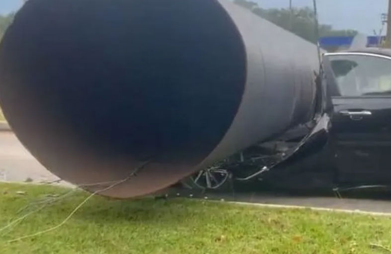 كادت امرأة من ولاية لويزيانا الأميركية تموت بعد سقوط لافتة سلسلة المطاعم الأميركية للأكل المكسيكي "تاكو بيل" على سيارتها في أعقاب عاصفة شديدة شهدتها الولاية الأسبوع الماضي. وكانت السيدة تنتظر طعامها أمام المطعم عندما سقطت اللافتة على الجزء الخلفي من سيارتها وسحقها بالكامل.