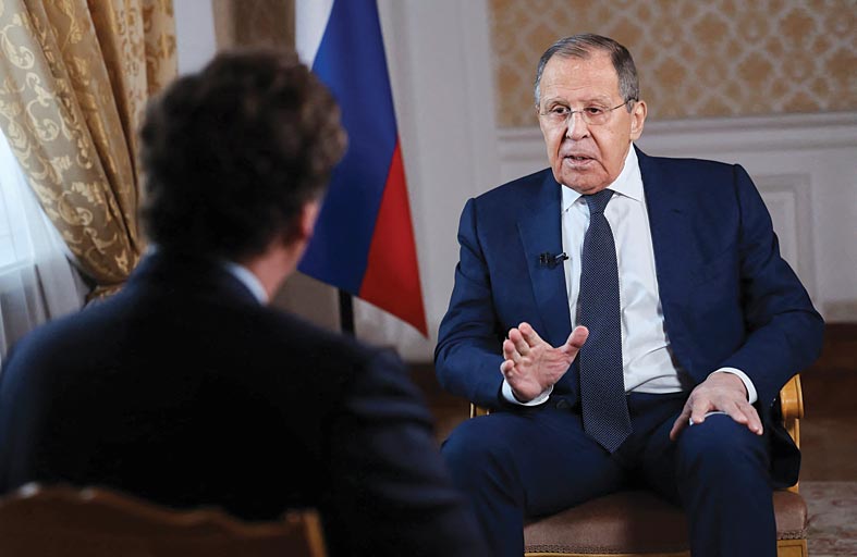 أعرب وزير الخارجية الروسي سيرغي لافروف في مقابلة بثت الخميس عن أمله بأن يكون الغرب قد أخذ على محمل الجدّ إطلاق بلاده صاروخا فرط صوتي جديدا ضدّ أوكرانيا، محذرا من أن موسكو مستعدة أيضا لاستخدام كل الوسائل كي لا تُهزَم في حربها ضد جارتها.