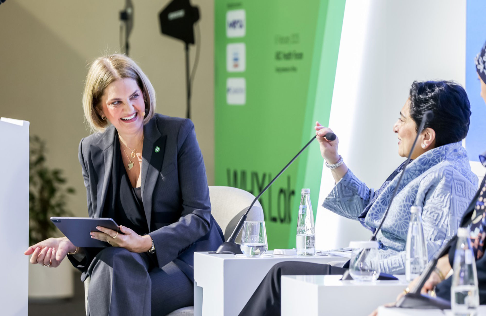 لبنى القاسمي تلقي الكلمة الافتتاحية في منتدى القيادات النسائية في قطاع الصحة خلال معرض ميدلاب الشرق الأوسط 2025