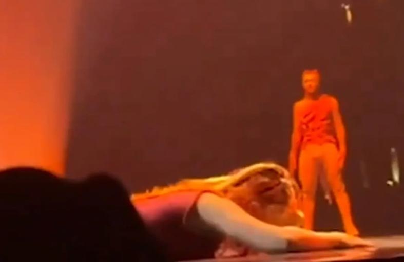 أظهر مقطع فيديو درامي، فنانة طوق هوائي تعمل مؤدية أكروبات مع سيرك دو سوليه، وهي تفقد إحكام قبضتها أثناء أداء العرض وتسقط على الأرض أدناه دون شبكة أمان.