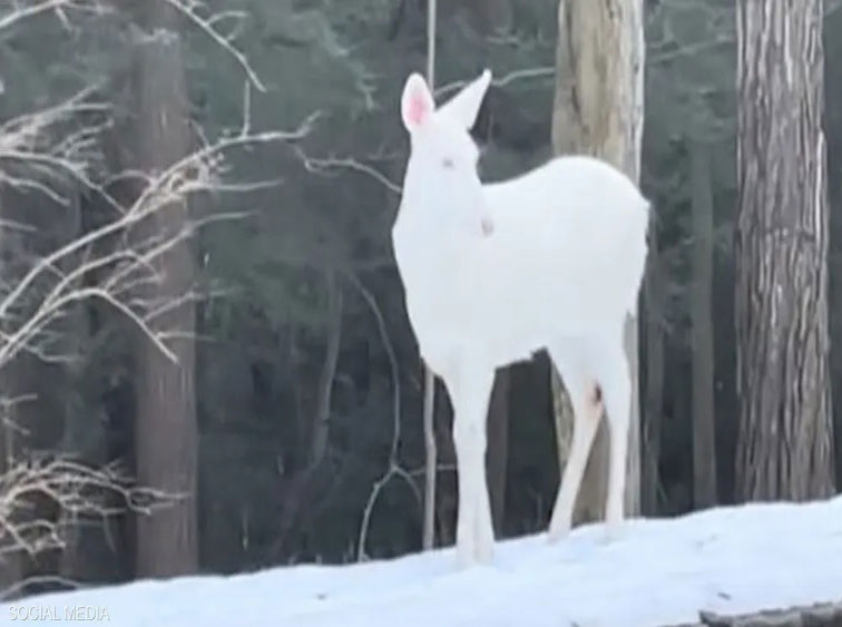 وثقت لقطات فيديو حيوانا نادرا يعاني من طفرة جينية تجعله يولد بدون الميلانين. وقالت صحيفة "ديلي ميل" البريطانية، إن سائقة صورت غزال "الألبينو" الأبيض وهو يقف على إحدى الطرقات دون أن تكشف موقع التصوير. وقال رواد مواقع التواصل الاجتماعي ممن شاهدوا الفيديو إنه صوّر في كندا، بينما قال آخرون إن الموقع في ولاية نورث كارولاينا بالولايات المتحدة. وتعتبر الغزلان البيضاء نادرة، ويعتقد علماء أنها تمثل ولادة واحدة فقط من بين كل 100 ألف ولادة.