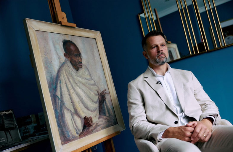 لوحة نادرة تمثّل غاندي تباع بمزاد