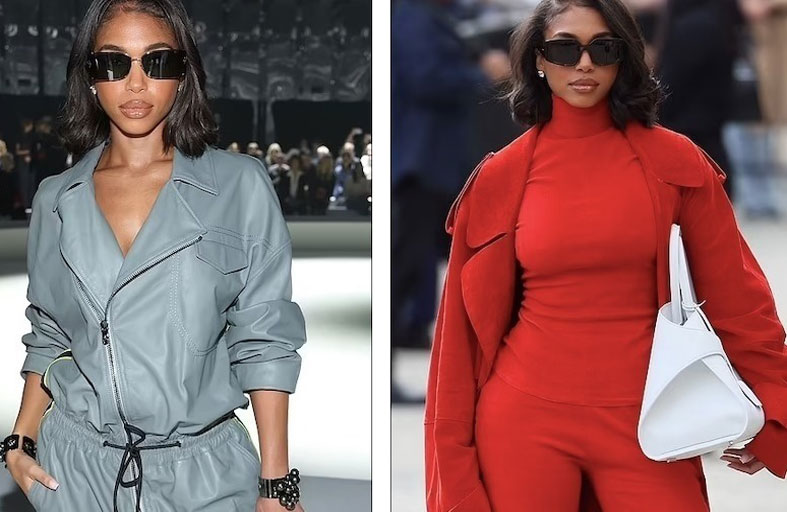 ظهرت ابنة ستيف هارفي (26 عاماً)، أمام منصة عرض فيراغامو بإطلالة حمراء من الرأس إلى أخمص القدمين. تألف زي لوري من قميص ضيق بياقة عالية وسروال تحت معطف واق من المطر من جلد الغزال، كما ارتدت العارضة حذاء عالي الكعب مصنوعا من الجلد باللون الأحمر.  وبعد الوقوف أمام المصورين في الخارج، دخلت لوري إلى الداخل لالتقاط الصور أمام خلفية “فيراغامو” الخضراء. وحظيت الشخصية المؤثرة على وسائل التواصل الاجتماعي، بشرف الجلوس في الصف الأمامي مع تريسي إليس روس. وحضرت العرض أيضاً مغنية تيك توك الشهيرة ديكي داميليو، والتي تألقت أيضاً بزي أحمر جريء.
