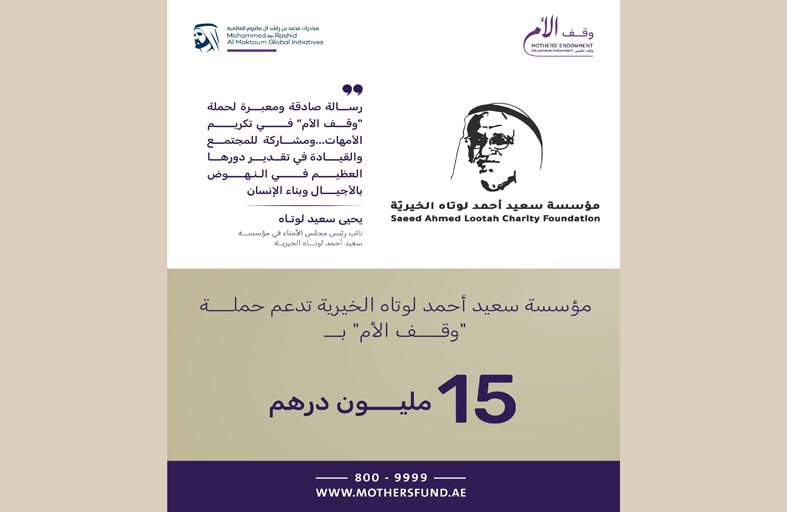 مؤسسة سعيد أحمد لوتاه الخيرية تدعم حملة وقف الأم بـ 15 مليون درهم