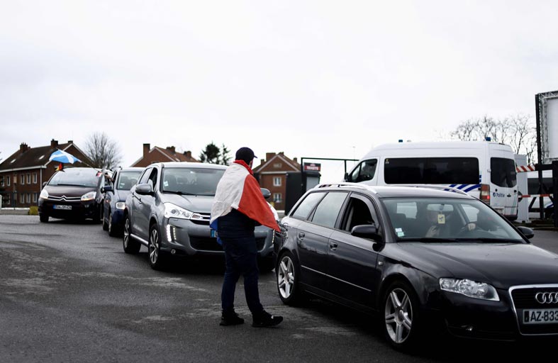ووصل المشاركون مطلقين أبواق مركباتهم مساء الأحد إلى موقف على مسافة عشرة كيلومترات من كبرى مدن شمال فرنسا وتظاهروا هاتفين “لن نتنازل عن شيء” و”حرية حرية” ورافعين العديد من الأعلام الفرنسية.