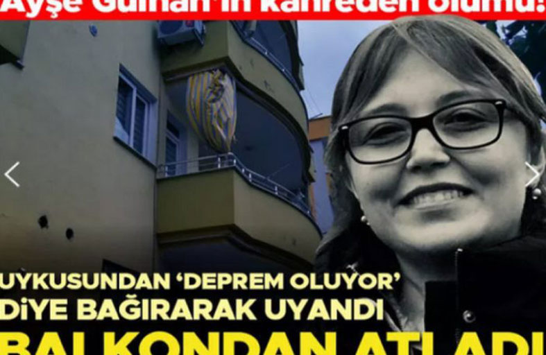 عانت عائشة جولهان جيلر من اضطراب ما بعد الصدمة، حتى إنها ما إن رأت في حلمها أن زلزالا جديدا وقع في مدينة هاتاي التي تسكن فيها، أسرعت فورا لتلقي بنفسها من شرفة المنزل. استيقظت عائشة جولهان جيلر "38 عاما"، وهي تصرخ من نومها، ظنا أن هناك هزة ارتدادية ضمن توابع زلزال 6 فبراير المدمر، وكانت في حالة ذعر، فركضت إلى شرفة الغرفة، وقفزت من الطابق الثاني. على الفور تم نقلها إلى المستشفى، إلا أنه لم يتم إنقاذها رغم كل التدخلات، وتوفيت، لتترك والدتها لطفية جيلر وحيدة. تقول الأم المكلومة إن "عائشة كانت تعاني حالة خوف بعد الزلزال، وكنا نقيم في الغرفة نفسها في ذلك اليوم. كانت الساعة نحو 3.30 مساء، استيقظت ابنتي فجأة وهي تصرخ، وقالت: أمي، هناك زلزال، فلنذهب للخارج". "ركضت نحو الشرفة، ولم أستطع منعها، وقفزت من الطابق الثاني. لم أفهم ما كان يحدث أيضا. عندما نظرت إلى أسفل الشرفة كانت ابنتي ميتة، صرخت ليساعدني الجيران وركضت إلى المكان الذي سقطت فيه ابنتي". وتؤكد جيلر أن ابنتها "لم تنتحر"، مضيفة أنها كانت "شخصا محبوبا في وظيفتها"، لافتة إلى اعتقادها بأن الراحلة "رأت زلزالا في حلمها، وقفزت في حالة من الذعر".