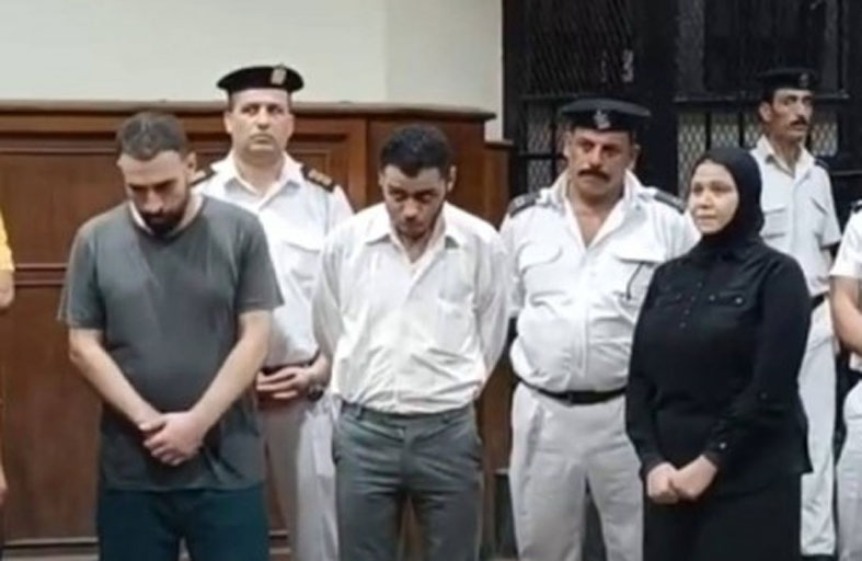 ووفق ما رصده موقع "سكاي نيوز عربية" في جلسة المحاكمة، فقد أمر رئيس المحكمة عبد الغفار جاد الله بإخراج المتهمين الطبيب أحمد شحتة وزوجته العرفي المحامية إيمان محمد ومساعده أحمد فرج، من قفص الاتهام والوقوف أمام منصة المحكمة وسط الحراسة الأمنية.