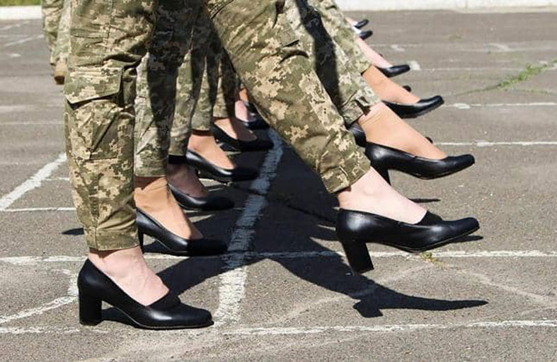 ونقل موقع معلومات وزارة الدفاع الأوكرانية عن المتدربة إيفانا ميدفيد قولها "للمرة الأولى يتم التدريب بأحذية بكعب".