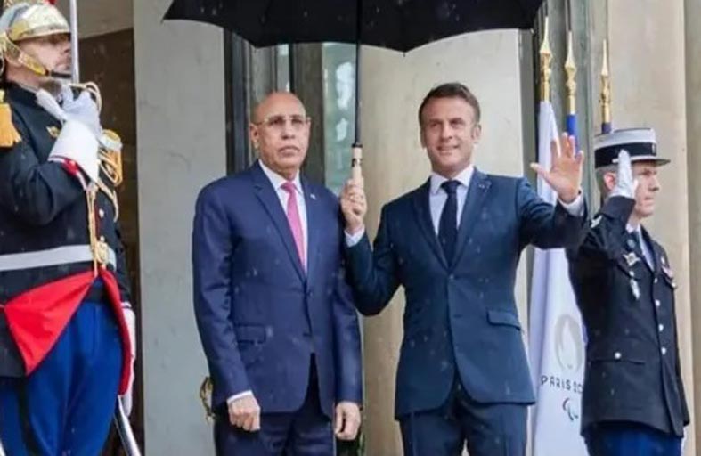 تداول رواد التواصل الاجتماعي على منصة فيسبوك الأكثر انتشارًا في موريتانيا، باستغراب وتعجب، صورة للرئيس الفرنسي إيمانويل ماكرون وهو يحمل مظلة فوق رأس نظيره الموريتاني محمد ولد الشيخ الغزواني، وقاية من رذاذ باريس المتساقط أمام الإليزيه.