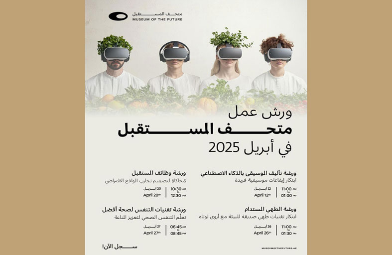 يستضيف متحف المستقبل سلسلة من ورش العمل والجلسات التفاعلية التي تتنوع بين الموسيقى وتصميم الصوت ومستقبل الوظائف والغذاء المستدام وتقنيات الصحة والتنفس، بهدف استكشاف أحدث الابتكارات والتقنيات المستقبلية من خلال تجارب عملية وغامرة يقدّمها خبراء متخصصون.