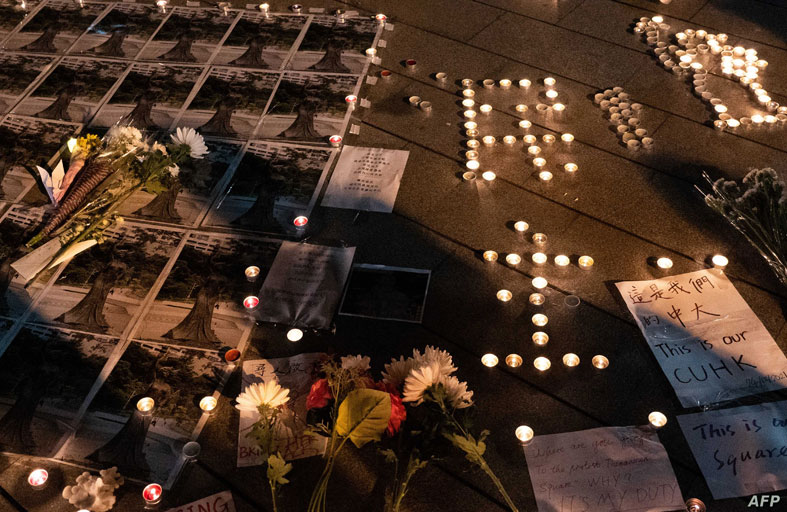 تجمع طلاب وخريجون في هونغ كونغ لتكريم نصبين تذكاريين يحييان ذكرى قمع المتظاهرين من أجل الديموقراطية عام 1989 في ميدان تيان انمين بعد إزالتهما ليلا من حرمي جامعتين في المدينة، مع سعي السلطات بشكل حثيث لمحو كل ما يمت الى هذا الحدث التاريخي.