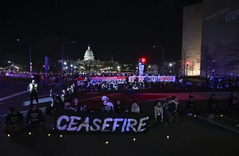 متظاهرون يطالبون بايدن بالضغط لوقف إطلاق النار بغزة