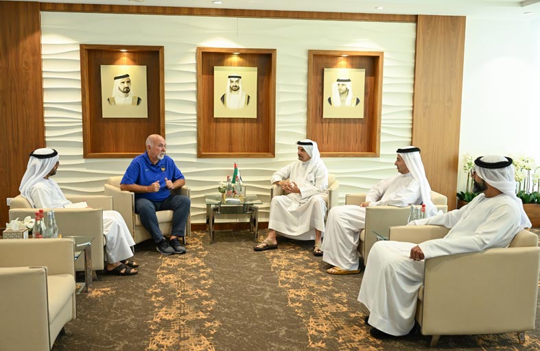 والتقى سعادة سعيد حارب أمين عام مجلس دبي الرياضي وناصر أمان آل رحمة مساعد الأمين العام بالخبير الفرنسي، وأشاد الأمين العام بالمدرسة الفرنسية لكرة القدم وبرامجهم الرائدة والناجحة في استقطاب وتطوير الموهوبين وتكوين أجيال جديدة ناجحة في كرة القدم نجحت في الحصول على كأس العالم مرتين وكأس القارات وكذلك المنافسة الدائمة على بطولة أمم أوروبا وغيرها من البطولات.