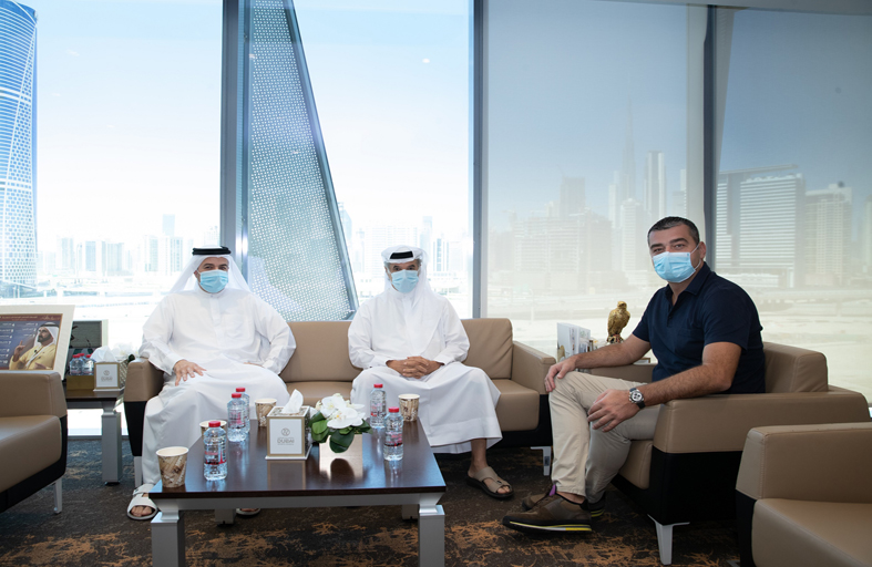 استقبل سعادة سعيد حارب أمين عام مجلس دبي الرياضي زوران لاكوفيتش مدير الاتحادات الوطنية في الاتحاد الأوروبي لكرة القدم، بحضور ناصر أمان آل رحمة مساعد أمين عام المجلس وعمران الجسمي مدير العلاقات الخارجية بالمجلس.