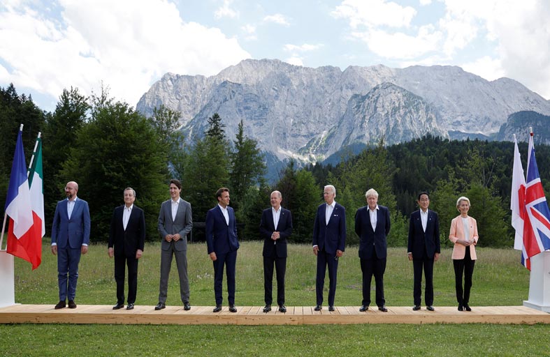 ويلتقي قادة فرنسا والولايات المتحدة والمملكة المتحدة وألمانيا وإيطاليا وكندا واليابان لمدة ثلاثة أيام في جبال الألب البافاريّة لحضور القمّة السنويّة للدول الصناعيّة السبع الكبرى، فيما يخشى البعض من التراخي في دعم كييف.