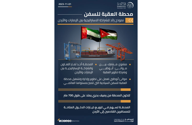 مثلت محطة العقبة للسفن السياحية، المشروع المشترك بين مجموعة موانئ أبوظبي وشركة تطوير العقبة، أحد ثمار التعاون والشراكة الإستراتيجية بين الإمارات والأردن، في ظل العلاقات الإستراتيجية الراسخة والمتجذرة بين البلدين الشقيقين.