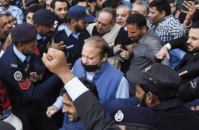 غادر شريف باكستان عام 2019 رغم الحكم الصادر بسجنه بعدما أمضى جزءا من عقوبته، لتلقي الرعاية الطبية في المملكة المتحدة، متجاهلا عدة أوامر للمحكمة بالعودة في عهد حكومة عمران خان. لكن فيما يقبع خان في السجن ولم يعد يحظى بدعم الجيش، عاد شريف مجددا إلى الساحة السياسية قبل الانتخابات المقررة في كانون الثاني-يناير 2024.