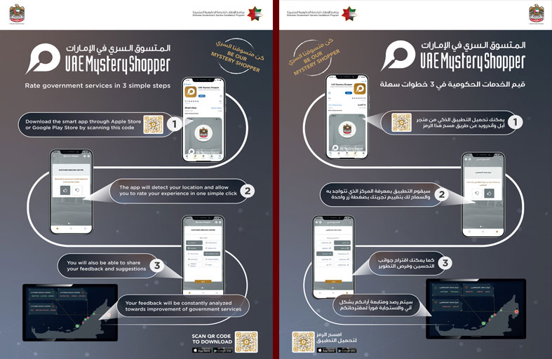 كما يتيح تطبيق المتسوق السري للمتعامل إمكانية تقييم تجربته أثناء وجوده في مركز الخدمة أو بعد إنجاز المعاملة ومغادرة المركز، ويوفر مساحة لكتابة تعليقات حول تجربة الحصول على الخدمة، ما يساعد الجهات الحكومية في فهم تجارب المتعاملين وتطلعاتهم بشكل معمق. ويمكن التطبيق المسؤولين الحكوميين من متابعة أداء مراكز الخدمات والتعرف على الجنود المجهولين والموظفين المتميزين الذين يقدمون أفضل الخدمات للمتعامل، ويوفر لهم عبر منصة إلكترونية البيانات اللازمة لدعم عمليات تطوير الخدمات والتعرف على نقاط القوة وفرص التحسين.