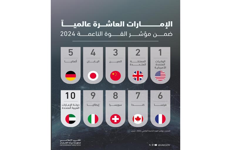 الإمارات في المرتبة العاشرة عالمياً في مؤشر القوة الناعمة العالمي للعام 2024 الذي يشمل 193 دولة