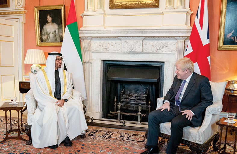 جاء ذلك خلال استقبال بوريس جونسون .. صاحب السمو الشيخ محمد بن زايد آل نهيان في مقر رئاسة الوزراء 10 داوننغ ستريت في العاصمة البريطانية لندن . واستعرض الجانبان - خلال اللقاء الذي حضره سمو الشيخ طحنون بن زايد آل نهيان مستشار الأمن الوطني وسمو الشيخ عبدالله بن زايد آل نهيان وزير الخارجية والتعاون الدولي - العلاقات التاريخية والإستراتيجية التي تربط البلدين وتستند إلى تاريخ طويل من الصداقة والتعاون والمصالح المشتركة في مختلف المجالات.