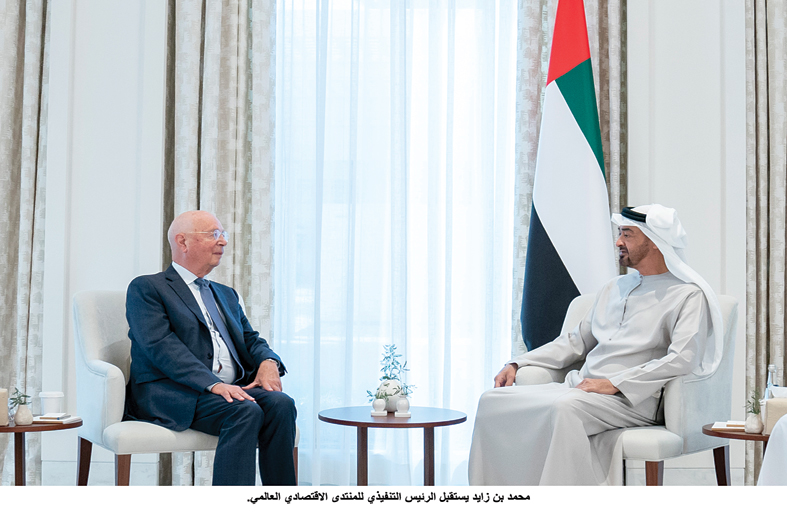 محمد بن زايد يستقبل الرئيس التنفيذي للمنتدى الاقتصادي العالمي