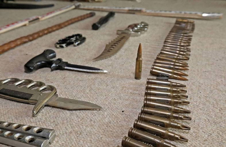 وأضافت الشرطة في بيان أن الألماني نقل إلى المستشفى، ثم فتشت شقته في وجود مالكها بعدها بيوم للاشتباه في انتهاك قوانين الأسلحة. وصادرت الشرطة حزام ذخيرة وقبضات حديدية وثلاثة سكاكين من بين أغراض أخرى، وفق ما ذكرت "الأسوشيتد برس". وتخلى الرجل طوعا عن أغراض أخرى لم تكن متعلقة بتهم جنائية، فضلا عن مواد متعلقة بالنازية، وفقا للشرطة.وتحقق الشرطة في مصدر الأسلحة، كما قالت إن الرجل ليس لديه سجل تهم مشابهة.