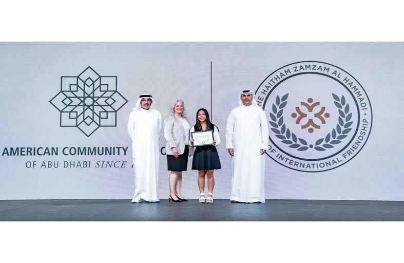 مدرسة الجالية الأمريكية في أبوظبي تمنح وسام هيثم زمزم الحمادي للصداقة الدولية لإحدى طالباتها