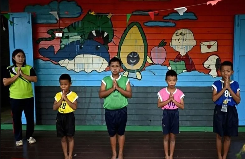 صباح كل يوم، يقف أربعة أطفال حفاةً لتأدية النشيد الوطني بفخر فيما يُرفَع العلم التايلاندي أمام مدرستهم المُشيّدة على دعائم متينة ولكنها مُحاطة بالأمواج.