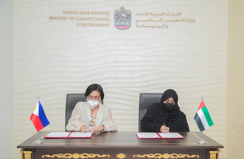 وقع المذكرة المهندسة نورة كرم الكعبي القائم بأعمال الوكيل المساعد في وزارة التغير المناخي والبيئة لقطاع التنوع الغذائي، وسعادة جاسلين كوينتانا سفيرة جمهورية الفلبين لدى الدولة .