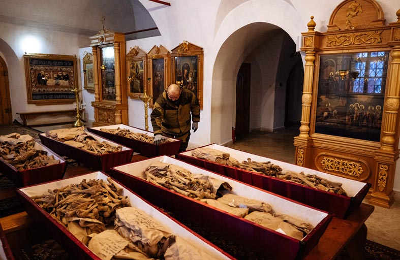 وفي انتظار دفنهم السبت في إحدى مقابر المنطقة، سيبقى الرفات في كنيسة صغيرة في دير يوحنا المعمدان الذي بُني عام 1536 ونهبه “الجيش الكبير” التابع لنابليون لدى انسحابه من روسيا عام 1812. وكان عُثر على الرفات قبل نحو عشر سنوات خلال خفريات تابعة لورشة بناء في جنوب غرب فيازما، وهي مدينة يبلغ عدد سكانها 52 ألف نسمة. وقالت عالمة الأنثتروبولوجيا تاتيانا تشيفدتشيكوفا لوكالة فرانس برس إن “هواة التاريخ في المنطقة اعتقدوا في البداية أنها مقبرة تعود إلى حقبة الحرب العالمية الثانية.