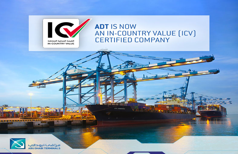 حصلت مرافئ أبوظبي، التي تتولى إدارة وتشغيل محطة الحاويات في ميناء خليفة والتي تعد أول محطة حاويات شبه آلية وأكثرها تطوراً على الصعيد التكنولوجي في المنطقة، على شهادة برنامج اعتماد تعزيز القيمة المحلية المضافة (ICV).