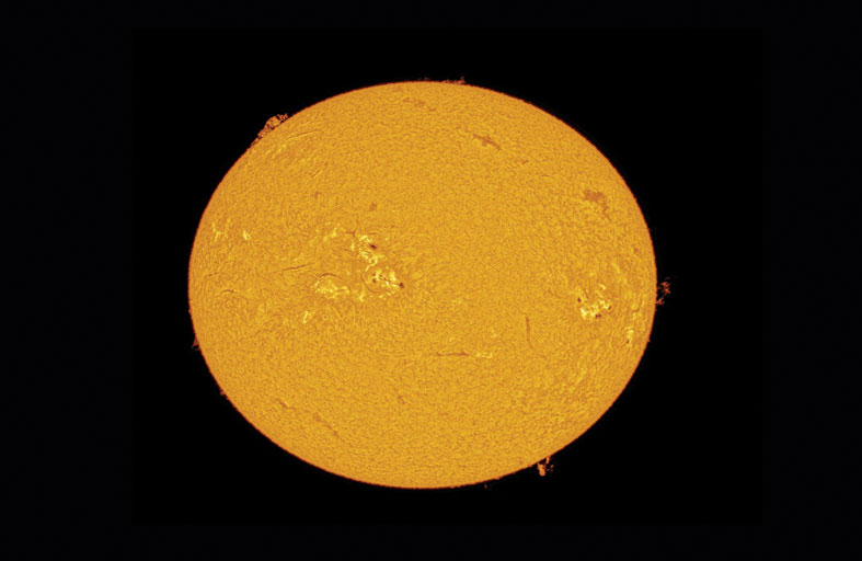 وثق مرصد الختم الفلكي ظهر أمس، نشاطاً شمسياً لافتاً، حيث أظهرت الصور العديد من البقع الشمسية كبقع سوداء داكنة، وظاهرة الأشواك الشمسية الصغيرة "Spicules" على حافة الشمس، وأشرطة داكنة على سطحها "Filaments"، بالإضافة إلى ألسنة اللهب الشمسية "Prominences" المنبعثة من حافتها.