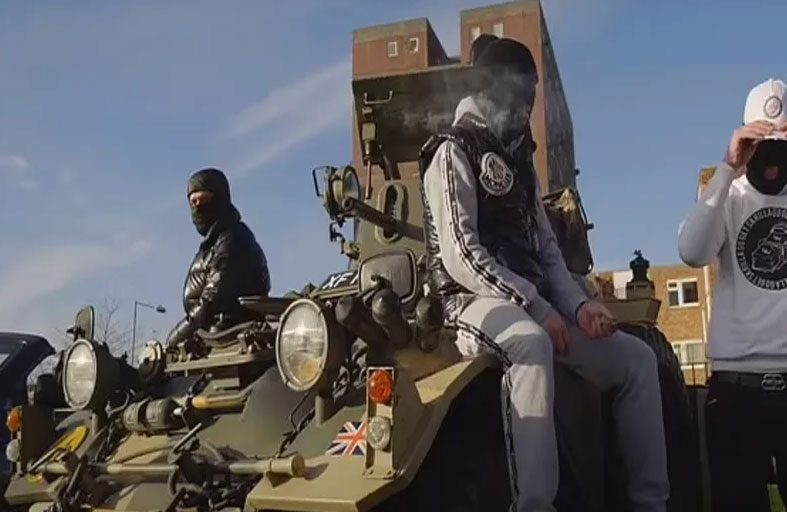 أثار فنانو راب ألبان جدلا كبيرا، بعدما قادوا مركبات عسكرية مزودة بمدافع رشاشة ثقيلة حول عقار سكني بريطاني، أثناء تصوير مقطع فيديو موسيقي (فيديو كليب) يمجد جرائم المخدرات والعنف.