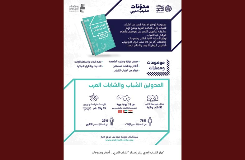 وأضاف : إصدار كتاب "الشباب العربي .. أحلام وطموحات" الذي ينشره مركز الشباب العربي بالتعاون مع مركز أبوظبي للغة العربية يشكل إضافة نوعية للمحتوى العربي الذي يجمع أفكار وآراء وتطلعات وأحلام وخواطر نخبة من الشباب العربي من مختلف التخصصات والاهتمامات، ويستشرف مستقبلاً واعداً لمجتمعاتنا العربية.
