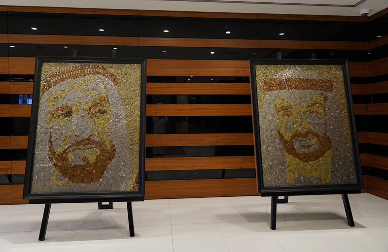 وتتكون تلك الصور من عملات معدنية مختلفة تنتمي إلى 88 بلداً، وتعكس تجانساً دولياً ينصهر فيه الانسجام الثقافي والتناغم المجتمعي وقيّم الانفتاح والتسامح التي أرساها المغفور له الشيخ زايد وتستمر في تعزيزها القيادة الرشيدة للدولة. كما أعد المركز لوحة فنية كبيرة تعبر عن التكامل الحاصل في خدمات وقطاع النقل العام بإمارة أبوظبي والتطور الحاصل في هذا القطاع.