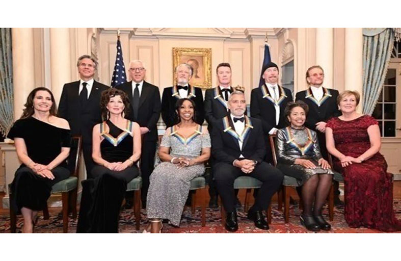 تسلم الممثل جورج كلوني وفرقة الروك الإيرلندية "يو تو" من بين فائزين آخرين جوائز مركز كينيدي، أعرق المكافآت الثقافية في واشنطن بحضور الرئيس الأميركي جو بايدن.