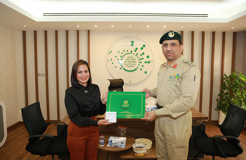 كرّم العقيد محمد عبدالله خلفان القايدي، نائب مدير الإدارة العامة للمرور بالوكالة، بحضور المقدم عبدالرحمن عبيد الفلاسي، مدير إدارة الشؤون الإدارية، السيدة إيلّي ماري بيرير، لحسن تعاونها مع الإدارة العامة للمرور عبر برنامج “كلنا شرطة».