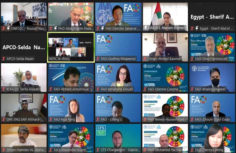 واستضافت جمهورية العراق يومي 7 و8 فبراير الجاري الدورة السادسة والثلاثين لمؤتمر منظمة الأغذية والزراعة للأمم المتحدة الإقليمي للشرق الأدنى، وشاركت فيه بحضور فعلي وافتراضي وزارات الزراعة والمنظمات والوكالات المعنية وكبار مسؤولي الدول الأعضاء في منظمة الأغذية والزراعة لمناقشة التحديات والأولويات الإقليمية المتعلقة بهذا الموضوع في إقليم الشرق الأدنى وشمال إفريقيا.